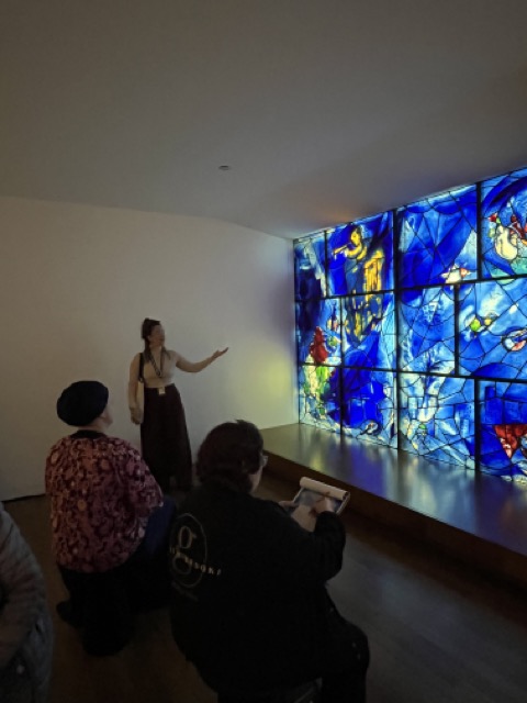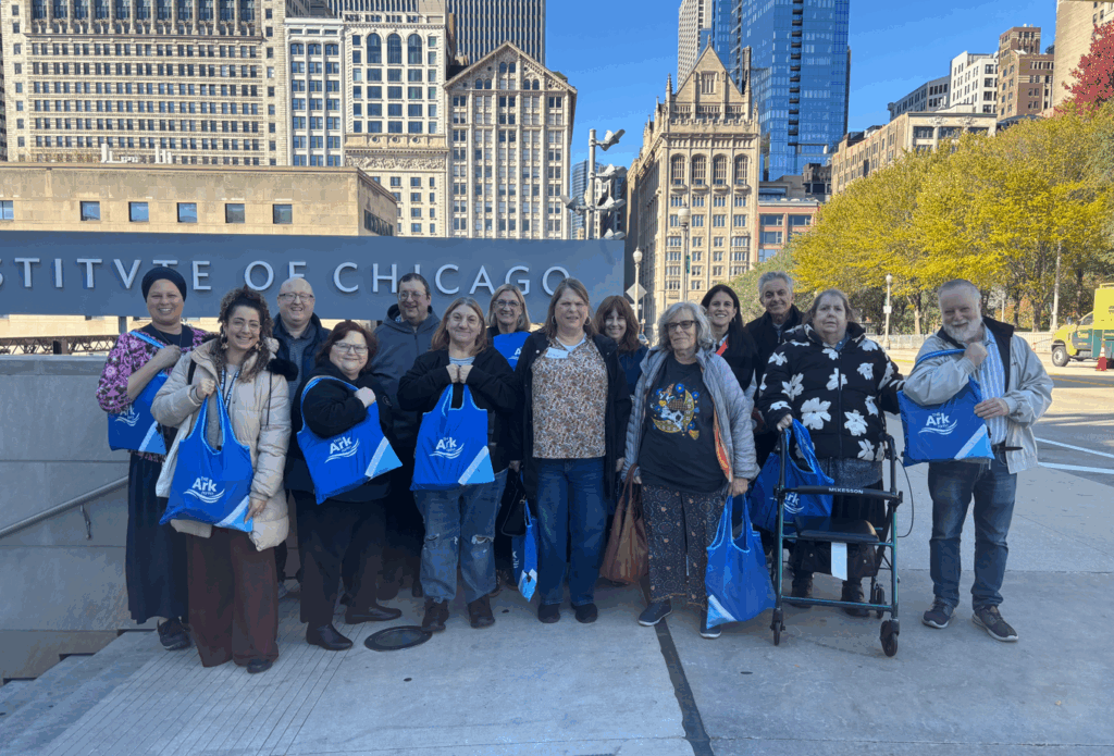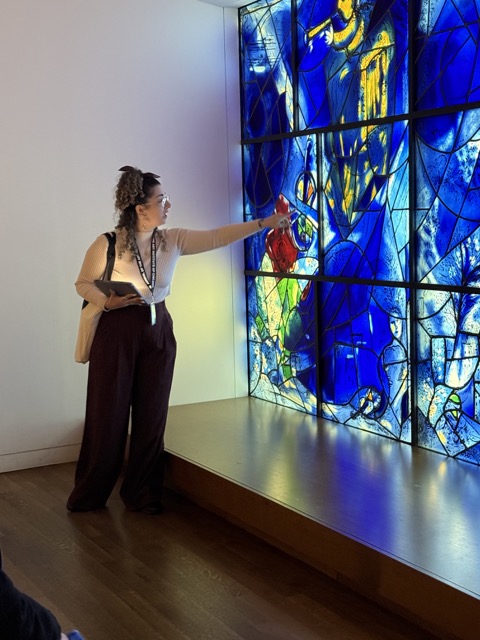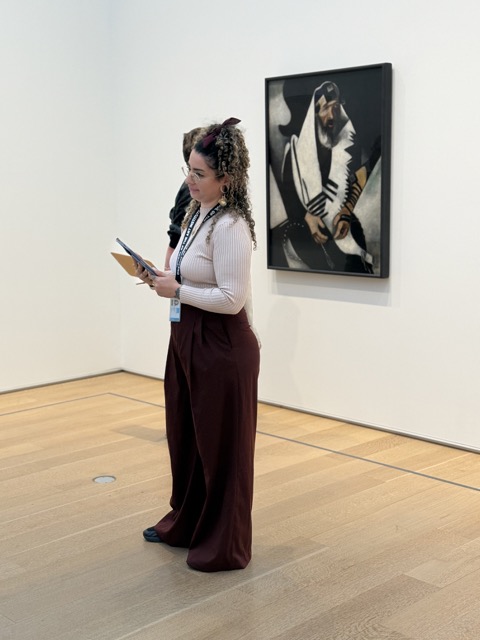 Recently, Karin organized a therapeutic tour of the Art Institute of Chicago, focusing on the works of Marc Chagall, a Jewish artist whose story of exile, faith, and resilience resonated strongly with Gesher participants. She curated the experience herself, selecting pieces that reflected Chagall’s spiritual and emotional journey, and even created reflective booklets for participants to engage with during the visit.
